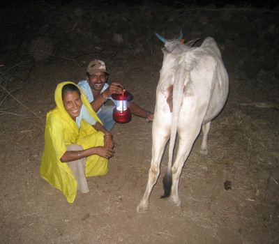 a solar lantern Anasuya Bai can now milk her cow before day break
