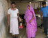 With the light of the solar lantern, Shanti and her son can print designs on cloth even at night